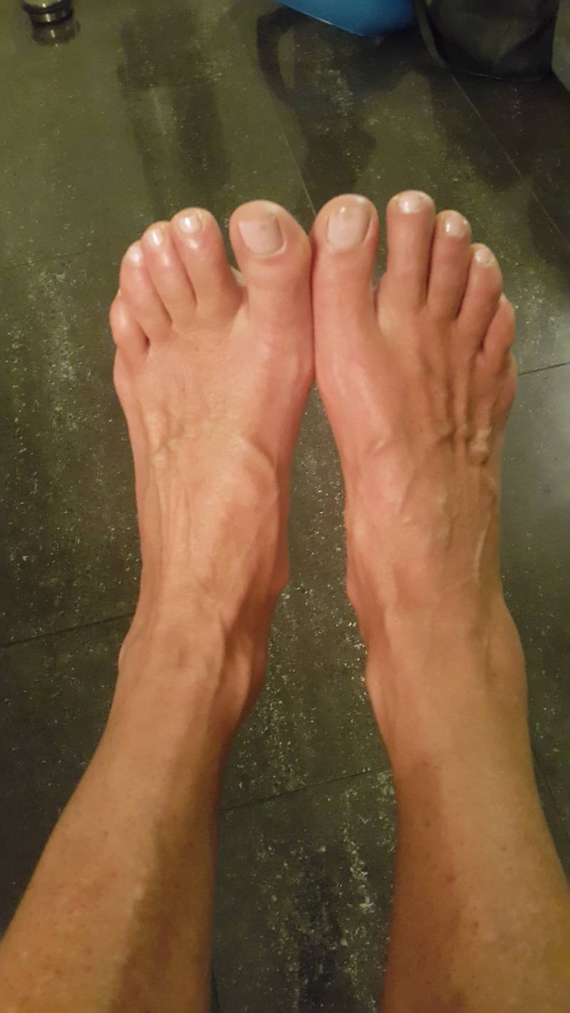 Als ik 's avonds op mijn knieën ga zitten lukt dat echt niet. Kruipen is dus even passé. Shit!! En op mijn enkel zit een dikke bult. Lekker , hoor.