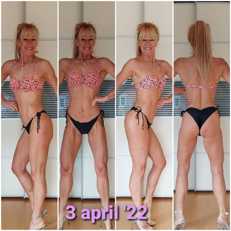 De spiegel moet het werk doen, wordt er altijd gezegd. Nou, soms doet de spiegel uitstekend werk en dat komt omdat er dan een prima samenwerking met het licht is. Maar soms schrik ik me rot van de spiegel en vraag ik me af waarom ik mezelf kwel door dit akelige beeld als waarheid voor de komende wedstrijd aan te nemen. Als ik op het podium in rot licht sta, staan mijn medestanders dat ook, dus moet dat voor de competitie niks uitmaken. Tenzij er van die dames met gladgestreken lichamen opduiken, net vijftig geworden, bloedmooi en gespierd door het vele jaren actief zijn in de fitnesswereld.