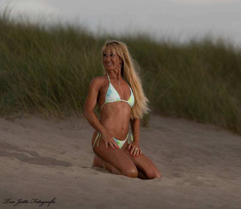 Na anderhalf uur rijden ontmoetten we Ton Jutte , de fotograaf die al eens eerder foto's van mij had gemaakt. We hadden er zin in, en ons publiek op het strand blijkbaar ook. De eerste foto's gingen goed en toen begon het donker te worden en te druppen. Na de hitte van die dag was het een welkome verfrissing, maar iets minder leuk voor de lampen en de camera, dus staakten we de shoot.