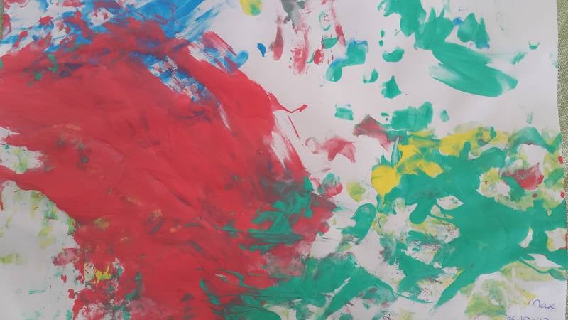 Wat nog meer veel zegt zonder woorden is het eerste kunstwerkje van Max. Een "handpainted piece of art". We zijn apetrots op hem.