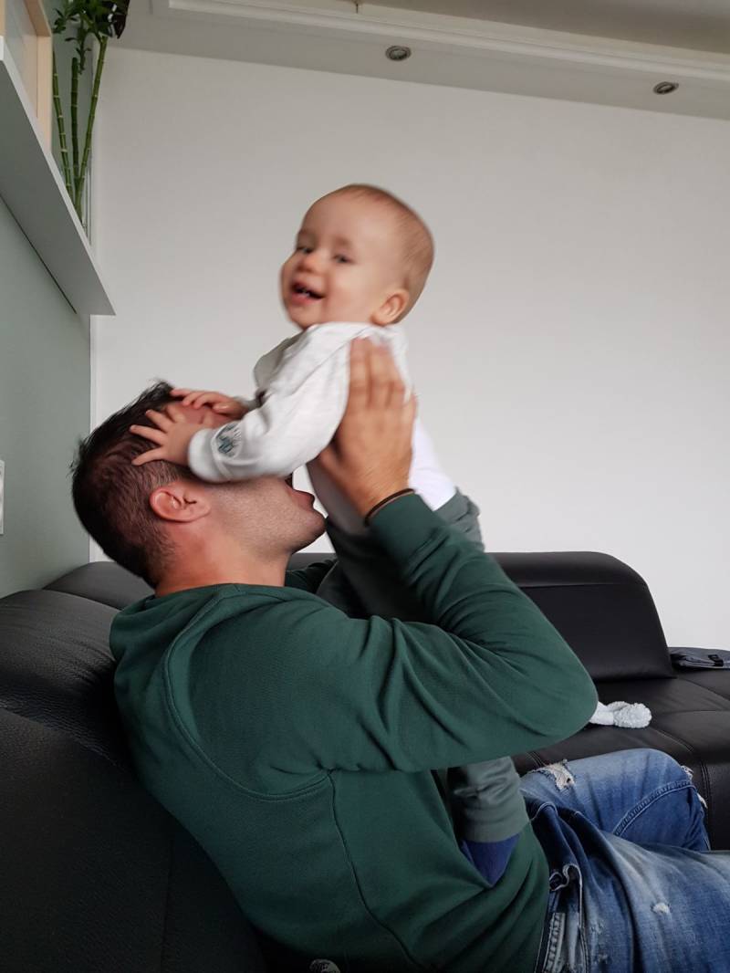 Maar vriendschap en liefde hebben geen taal nodig; het is al een soort taal zonder woorden. Dat Max ondertussen al aardig wat woordjes heeft opgeslagen blijkt uit het feit dat zijn kleine wijsvingertje al heel gecoördineerd naar het plaatje van het vogeltje of van het konijntje in zijn boekje gaat. Vogels ziet hij de hele dag voorbij vliegen en hij volgt ze allemaal, onze kleine vogelspotter. En zijn slaapknuffel is een konijn, ook zo'n ouwe bekende van hem. Hij kent die woorden dus al aardig goed, al kan hij ze nog niet zeggen. "Papa" en " mama" kent hij ook al goed. Als je vraagt "Waar is mama/papa?", begint hij te glunderen en kruipt naar het raam of de trap, in afwachting van hun komst. En volgens mij heb ik hem al " mama" horen zeggen, maar dat wil papa vast niet weten, want hij wil die wedstrijd graag winnen.