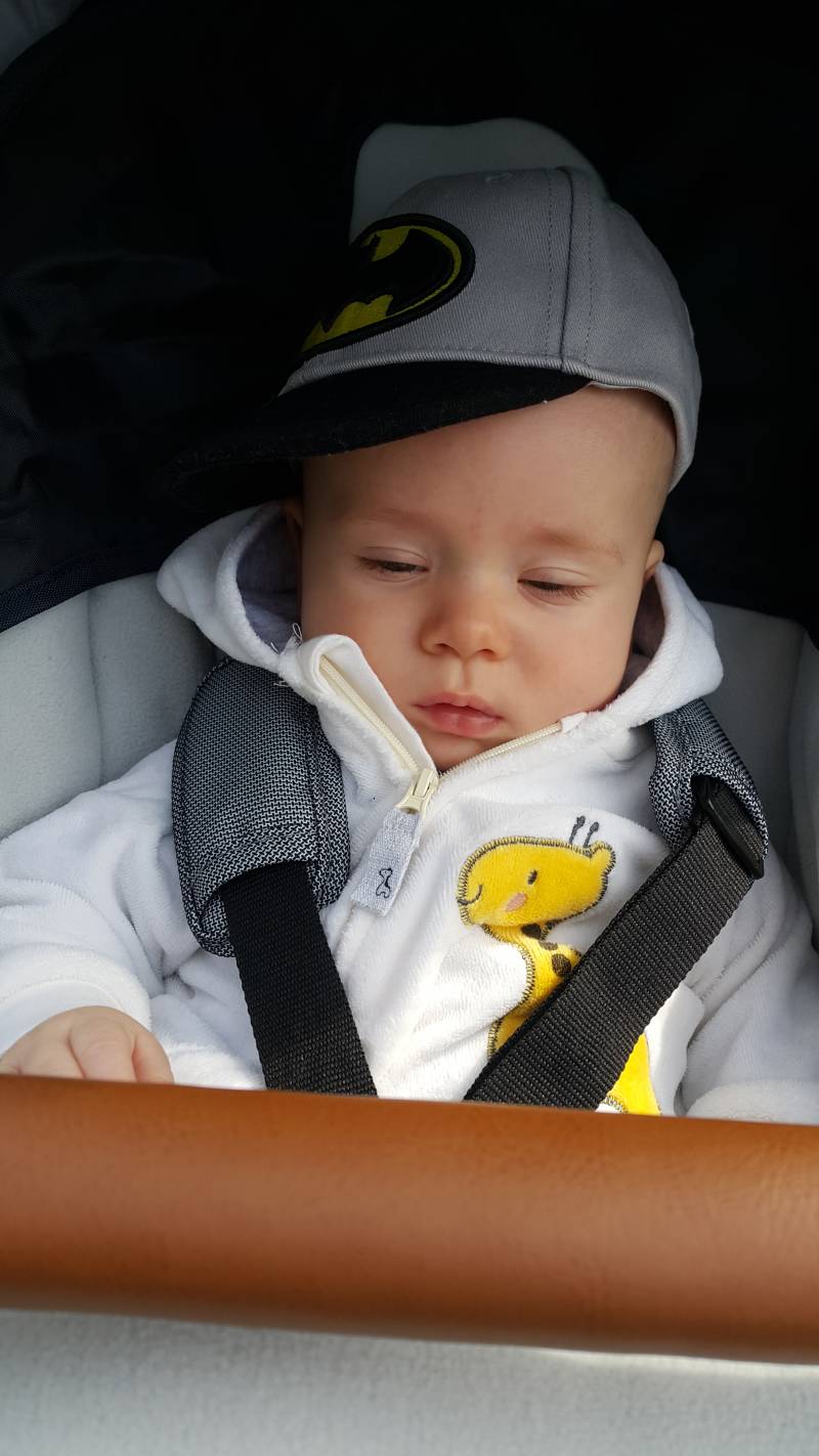 Onder het wandelen blijven we elkaar verliefd aankijken. Je bent dan ook de knapste baby van bijna 4 maanden oud in heel Dubbeldam, wat zeg ik, van heel Dordt, zoals je erbij zit in je wandelwagen met je stoere batmancap op.