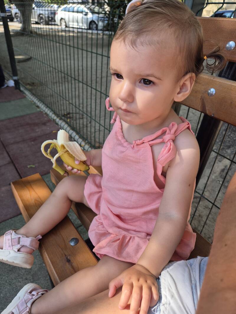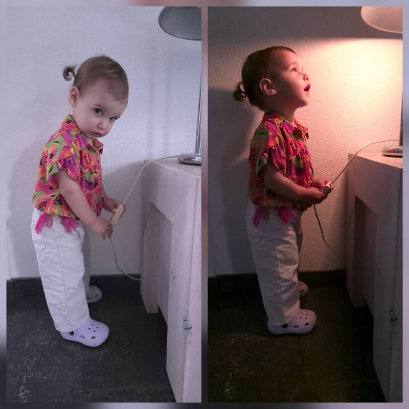 Mama was het eerste woordje en aangezien maan er veel op lijkt was dat voor haar makkelijk uit te spreken. Tita was een goeie opvolger en zoals ik al zei, papa volgde ook al snel. Nu struikelen we soms over de woordjes waarvan we geen snars snappen. Misschien omdat het Grieks, Engels, Nederlands door elkaar is, of omdat ze het zelf ook nog niet helemaal kan verwoorden, daar weten we het fijne nog niet van. Maar woorden heeft Lily niet nodig; haar mimiek vertelt je alles wat je moet weten.