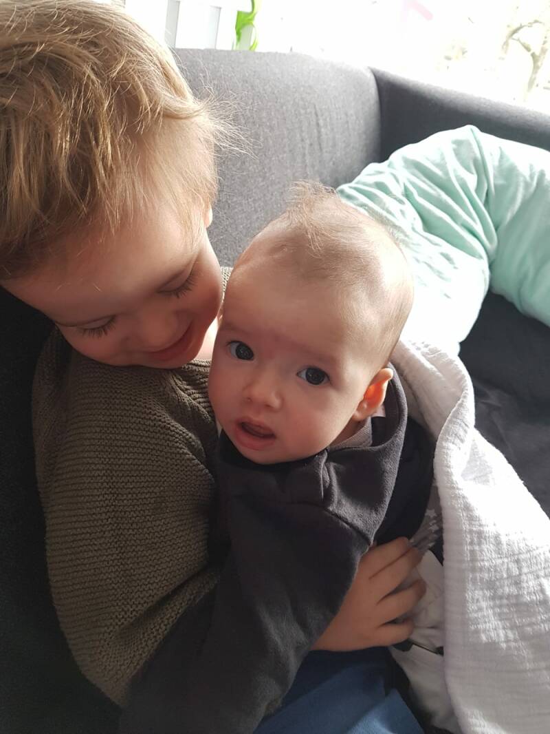 Zo heb ik mijn papa er nog nooit bij zien lopen. Mijn oma wel, mijn tantes ook en mama ook. Maar misschien komt het omdat mama wil oefenen voor als mijn zus weer haar krijgt. Toen ze er net was had ze donker haar, maar waar het gebleven is? Niet bij de kapper, zoals bij mij. De elastiekjes zijn al in huis, maar waarvoor, haha. Want zeg nou zelf, met deze pluizenbol kan je toch niks? Ja zus, jij lacht naar mij, maar ik moet ook om jou lachen, hoor.