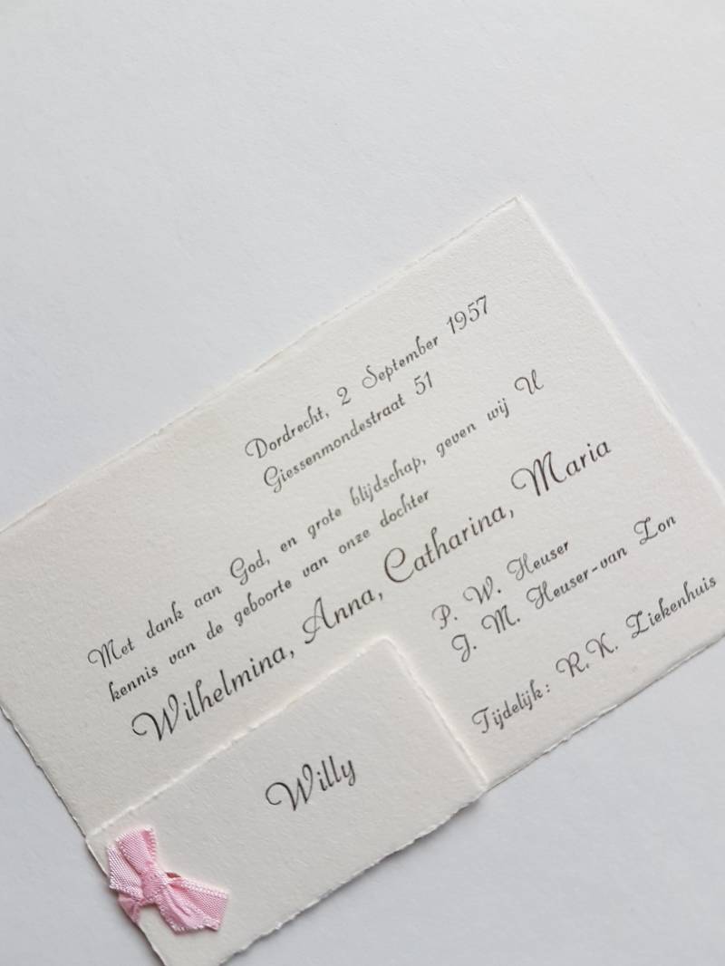 De keuze van mijn ouders om mij Willie te noemen heb ik nooit begrepen. Niet dat mijn naam niet bij mij past, maar omdat mijn oudere nichtje ook al zo heette. Op mijn geboortekaartje staat Willy, zie je wel. Geen idee waarom ik er zelf Willie van heb gemaakt. Ik vind het lekkerder schrijven, dat wel. Aan de klank of de betekenis is niks veranderd.