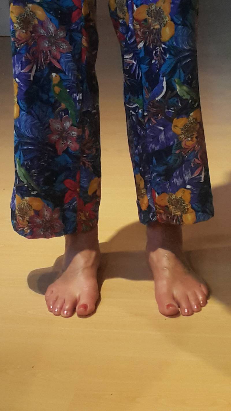 Heb je hem lang niet gebruikt dan is een opfriscursus wel even handig. Hoe span je de draden ook alweer? Na veel gevloek en afbrekende draden lukt het me om een steek in de stof te zetten zonder dat er aan de achterkant van de stof een grote prop draden verschijnt. Wat ga ik doen? Een broek die veel te lang is een stukje inkorten. Hup, de schaar erin, ja, in twee pijpen tegelijk, rats! En omzomen maar. Hatsiekiedee! Klaar, even passen... Broeken met te korte pijpen, zijn die nou wel of niet in de mode?