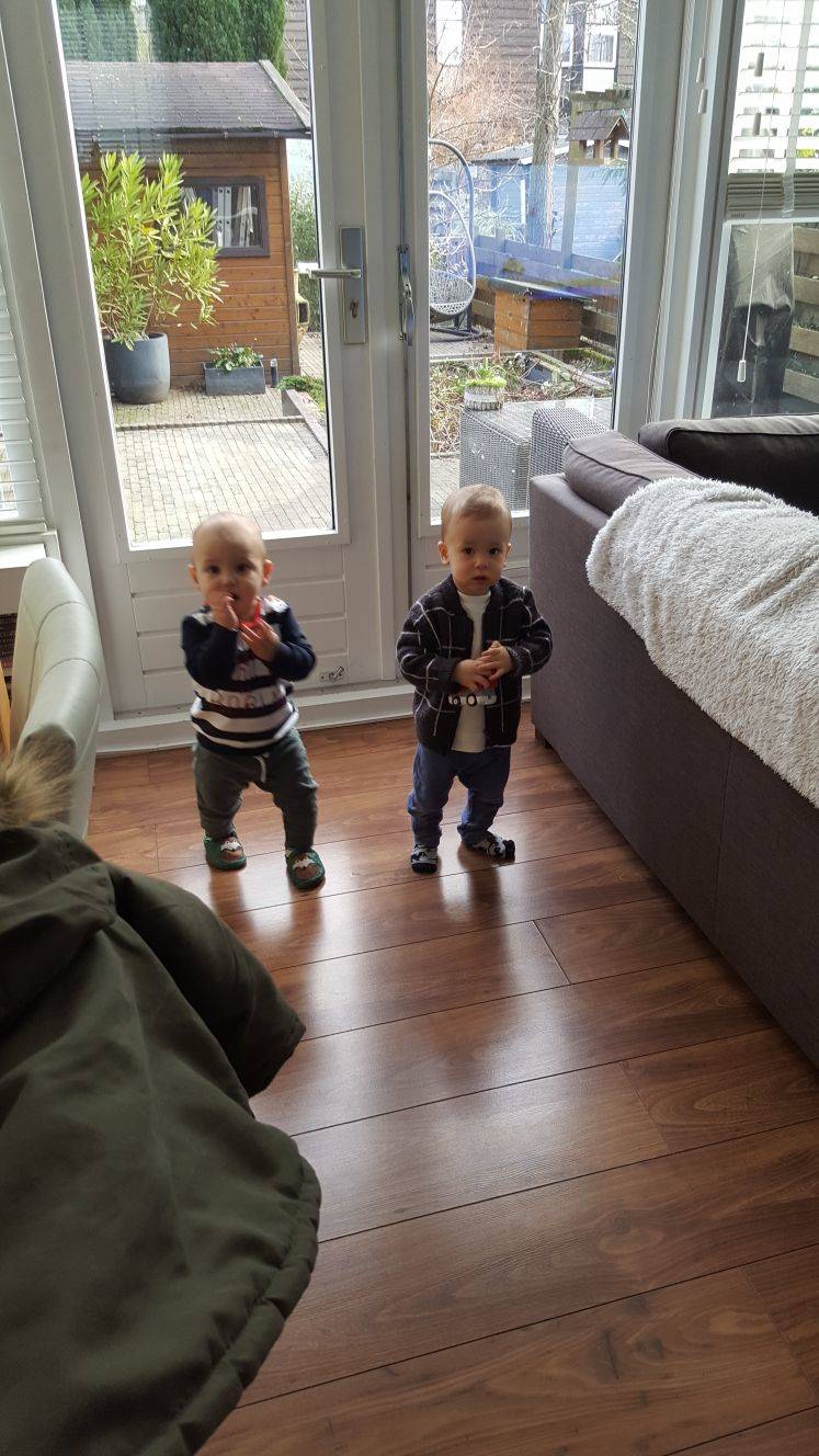 Nu Max loopt staat hij weer op gelijke voet met zijn mattie Thiago. Thiago had dat kunstje al veel langer onder de knie, maar nu Max niet meer , maar minder kruipt, kunnen de vriendjes elkaar weer in de ogen kijken. Al kijken ze samen liever naar de poes.